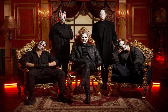 メンバーは、左から 隈取、狐、般若(リーダー)、おかめ、阿形。