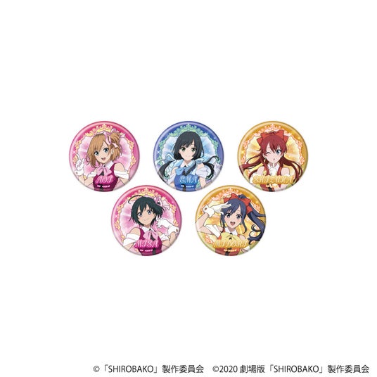 缶バッジは、大きさおよそ5.7cm。劇中アニメ『えくそだすっ!』に登場するアイドルユニット・トレイシーの衣装を着た“みゃーもり”こと宮森あおいたちの上半身をクローズアップしました。