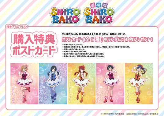 今回発売した『SHIROBAKO』の新作グッズのみを2,200円(税込)お買い上げごとに、ポストカード(全5種)をランダムで1枚プレゼントします。