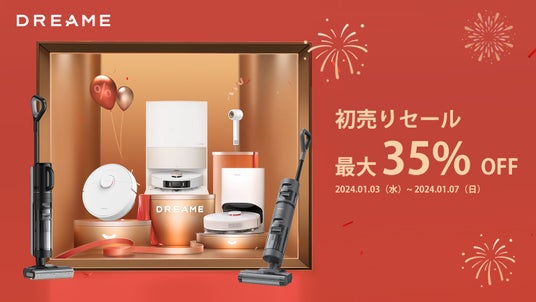 シー・エフ・デー販売株式会社(社長:三谷弘次、本社:愛知県名古屋市)が代理店を務めます、Dreame Technologyの日本支社であるドリーミーテクノロジージャパン株式会社(東京都大田区/代表取締役社長 高野亮子)は、日頃のご愛顧を感謝して、2024年1月3日(水)9時から1月7日(日)23時59分までの5日間、公式AmazonストアとDREAME公式ヤフー店で期間限定でお得な「初売りセール」を開催いたします。5way全自動のロボット掃除機DreameBot L20 Ultra Complete、4in1多機能の水拭き掃除機Dreame H12 Dualと年末に発売されたばかりのDreame Hair Glory速乾ヘアドライヤーを含む、Dreame公式ショップ内対象商品が最大35%OFFで購入できる大変お得なセールです。Dreame製品を手に入れて快適な一年を始めましょう!