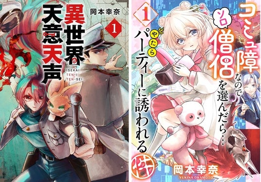 左)『異世界天意天声』(C)岡本幸奈/徳間書店 右)『コミュ障なのでソロ僧侶を選んだら…やたらパーティーに誘われる件』 (C)岡本幸奈/徳間書店 (C)AHS