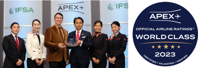「WORLD CLASS」は、APEX Official Airline Ratings ™で 「FIVE STAR」(*3)に認定された航空会社を対象に、航空業界専門の監査会社「Yates and Partners(イェイツ アンド パートナーズ)」(*4)による「サステナビリティ」、「安全・安心とウェルビーイング」、「サービス品質」の3つを軸とした厳格な監査が実施され、監査レポートとお客さま評価データ(NPS)を第三者機関であるメルボルンのビクトリア大学のマクスウェル教授が総合的に分析、その結果に基づいてAPEXの運営委員会が厳選して認定を行います。今回の「WORLD CLASS」には、JALを含む世界で8社(*5)のみが認定されました。