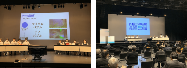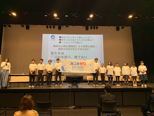 熊本は地下水の恵みを享受しているとともに、豊かな海に生活を支えられています。しかし世界的に海洋ごみの問題が叫ばれており、海洋ごみの多くは、街で生活する人間が廃棄したものが川を伝って海に流失していると考えられています。特にマイクロプラスチック化したものは回収が不可能であり、生態系への影響も懸念されています。これらの問題について、小学生と高校生がこれまで学習した成果を世界に発信、ステージ上で意見交換をし、日本財団のプロジェクト「CHANGE FOR THE BLUE」の理念に基づき、海洋ごみゼロ宣言をしました。このイベントは、日本財団が推進する海洋ごみ対策プロジェクト「海と日本プロジェクト・CHANGE FOR THE BLUE」の一環で開催しました。