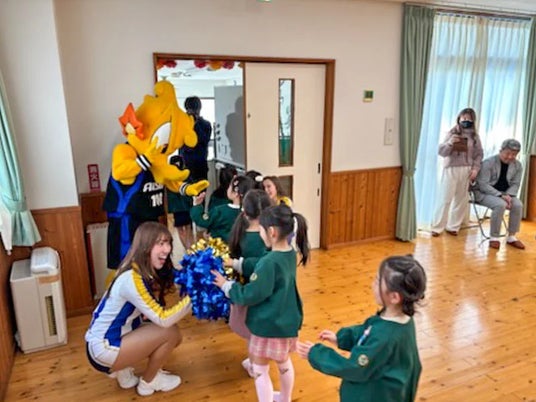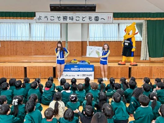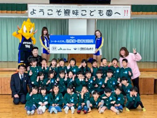 2025年3月10日(月)、シーホースくんとSuper GirlsのCHISAKI、SAYAKAが熊味こども園(西尾市)を訪問し、園児の皆さんと一緒にクイズやダンスを楽しみました。
