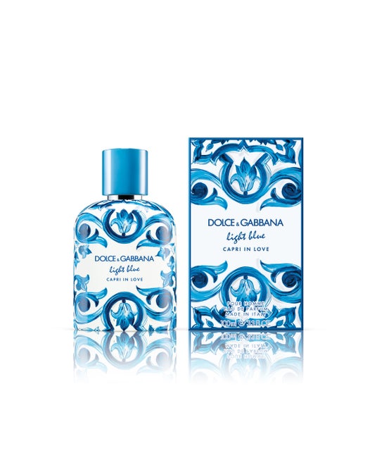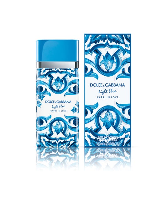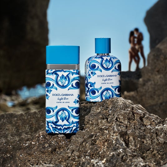 ライトブルー カプリインラブとライトブルー プールオム カプリインラブはいずれも、新生ライトブルーと同じシルエットのボトルに、カプリ島の真髄とも言えるブルーのマヨリカプリントを施し、お揃いのボックスに収めています。このデザインは伝統とクラフツマンシップに対するドルチェ&ガッバーナの敬意と、絶景を誇る地中海地域との深いつながりを融合させたものです。