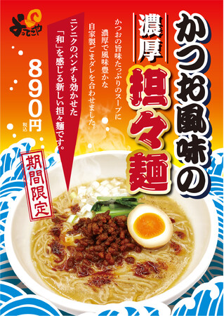 全国に中華・ラーメン業態を多彩に展開する株式会社大阪王将(東京ヘッドオフィス:東京都品川区 代表取締役社長:植月剛)は、全国のラーメン専門店「よってこや」において、期間限定ラーメン「かつお風味の濃厚担々麺」を2023年10月6日(金)より期間限定で販売いたします。