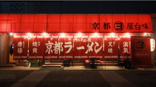 ラーメン店「よってこや」。京都の伝統的な醤油とんこつラーメンをベースにした「鶏ガラとんこつラーメン」は、コクがあるのに後味さっぱり。 “屋台”のワクワク感と至近距離でラーメンが出来上がるライブ感を楽しみながら、元気や活気をお届けする・・・美味しさの笑顔があふれ、明日への活力が満ちる、