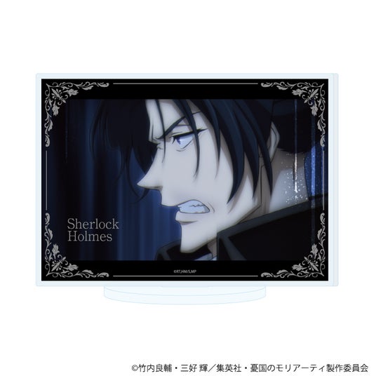 大きさおよそ15cm×15cm以内のアクリルスタンドには、ウィリアムやシャーロック・ホームズ、作中の名場面をデザイン。