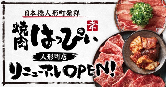 株式会社物語コーポレーション(本社:愛知県豊橋市/代表取締役社長:加藤 央之)が運営する『焼肉はっぴぃ人形町店』は、グランドメニューを一新します。厳選して仕入れた和牛カルビや国産牛などをお店でカットし、こだわりの焼肉が食べられるお店へリニューアルオープンいたします。リニューアルオープンを記念して、2024年3月11日(火)から3月24日(日)まで「リニューアルOP記念 生ビール&樽ハイレモンサワー半額キャンペーン」を実施いたします。
