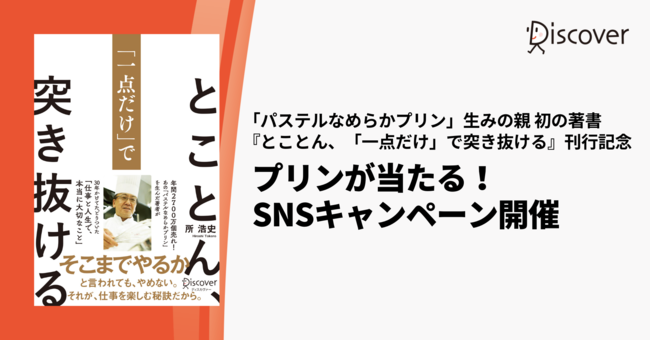 株式会社ディスカヴァー・トゥエンティワン(本社:東京都千代田区、取締役社長:谷口奈緒美)は2021年12月23日に『とことん、「一点だけ」で突き抜ける』(所 浩史・著)を刊行しました。本書の刊行を記念して、抽選で「TOKOROプリン」6個セットが当たるSNSキャンペーンを開催します。