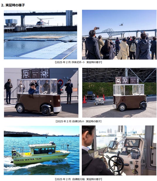 ~ 浮体式ポートへのヘリコプターの世界初離着陸、自律航行小型船舶の東京港初航行、自律ロボットの運行 ~