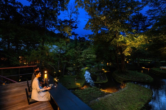 星のや軽井沢の敷地内には、長い歴史の中で大きく育った多種多様な樹木と、浅間山を源とする清流を引き込んだ豊かな水でデザインした棚田の庭があります。110周年のこの夏、ランドスケープを愉しみながら信州の食文化を識る特別な体験を提案します。