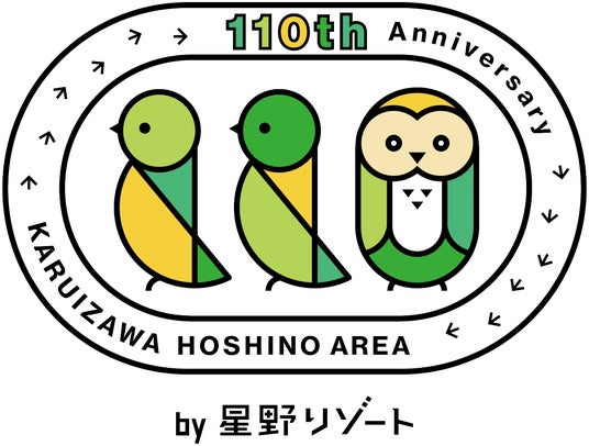 軽井沢星野エリア110周年のロゴは野鳥のデザインを取り入れています。国設「軽井沢野鳥の森」に生息する多くの野鳥と共生してきた歴史と、110周年を色鮮やかに愉しく祝う思いを込めました。