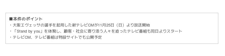新CMの放送にあわせて、顧客や社会に寄り添い、課題の解決に向けて奔走している当社グループの活動を追ったテレビ番組「Stand by you」の放送も開始されます。11月25日(日)から、毎週日曜日の放送となります。