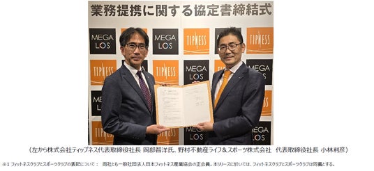 「Life&」をスローガンにスポーツクラブ※1「メガロス」及びバイリンガル幼児園、アフタースクールを展開する野村不動産ライフ&スポーツ株式会社(本社:東京都中野区/代表取締役社長:小林利彦、以下「メガロス」)は、総合フィットネスクラブおよび24 時間トレーニングジムを展開する株式会社ティップネス(本部:東京都千代田区/代表取締役社長:岡部智洋、以下「ティップネス」)と業務提携に関する協定を3 月28 日に締結しました。今後、両社が連携し、新たな付加価値を共創しながら、地域社会における課題解決やウェルネス向上への貢献を目指します。