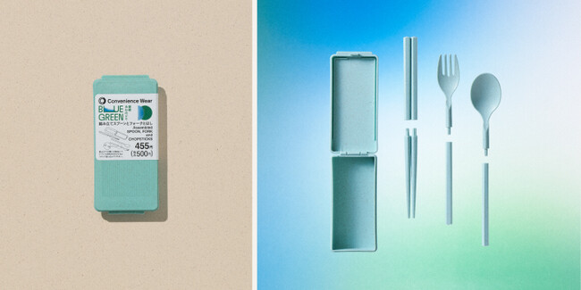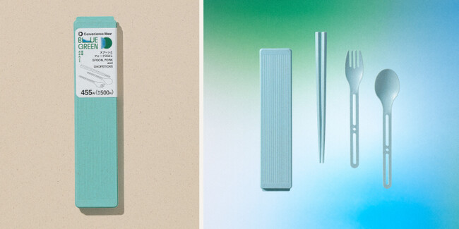 プロジェクトの第1弾として、2022年4月より施行されたプラスチック資源循環促進法によるファミリーマート店舗でのフォークの原則配布取りやめにともない、洗ってくり返し使えるカトラリーセット「スプーンとフォークとはし」455円(税込500円)などのサステナブル商品を発売いたします。ファッションデザイナー落合宏理氏と共同開発のもと、「碧緑」を共通のカラーとして使用し、持ち歩きやくり返し使用したくなるような形状にもこだわりました。また、環境に配慮した素材を使用しています。