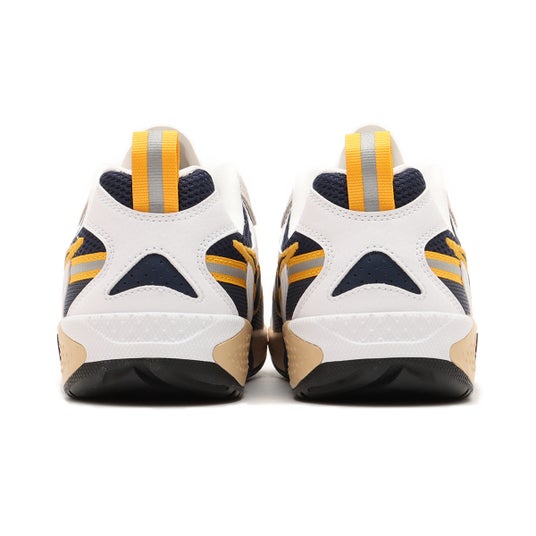 注目の新カラーは、人気のミシガンカラーを彷彿とさせるカラーウェイが特徴。ホワイト、ミッドナイトベイビー、ユニバーシティゴールドという伝統的な組み合わせカラーと“JAM”の複雑に重なり合うパーツを際立たせる白黒のカラーリングで登場!練習から普段使いしやすい一足となっています。