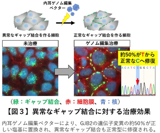 ● 遺伝性難聴の内耳で変異遺伝子を修復し正常に機能させることに成功