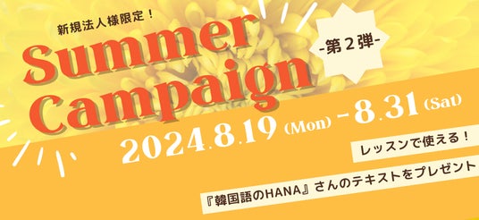 韓国がぐっと近くなる一番近いオンライン韓国語教室「K-アカデミー(https://k-kaiwa.com/ )」を運営する株式会社スモールブリッジ(本社:東京都渋谷区、代表取締役:橋爪小太郎)は、2024年8月19日(月)~8月31日(土) にお申込いただいた新規法人様向けに初月最大10名様までのご受講料が無料となる割引キャンペーンを実施致します。