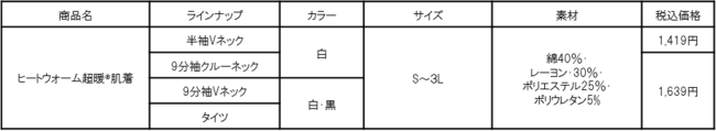 ■ヒートウォーム超暖(R)肌着 商品特長