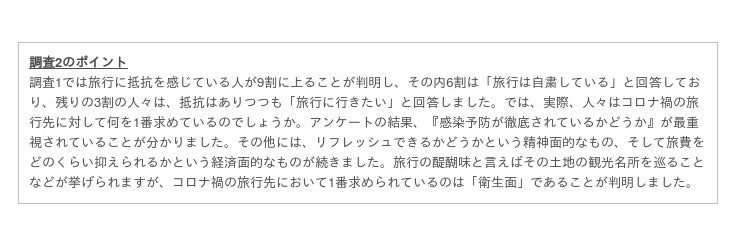 ■調査2 「コロナ禍の旅行先で1番求めることはなんですか?」