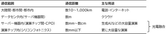 図1:電気通信を光通信でおきかえる通信の光化の段階と光電融合の範囲