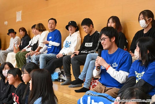 交流イベントでは11月に開催した「西三河地域 特別支援学校 合同バスケットボールクリニック」に参加した生徒たちへ角野選手から声をかけるなど、和やかな雰囲気の中、大変有意義な時間を過ごしました。