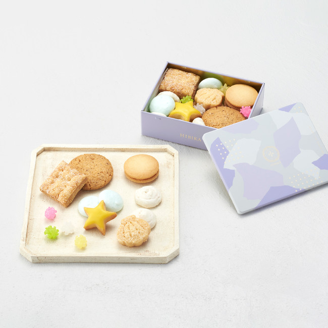 すみれ色のクッキー缶“夏のふきよせ〈星〉”新発売