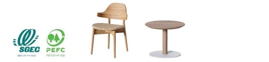 森林・林業の成長産業化や地域振興、資源循環型の社会実現に貢献する FSC(R) 認証のテーブルを採用しました。