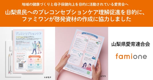 「子どもを願うすべての人によりそい 幸せな人生を歩める社会をつくる」をビジョンに掲げ、法人の従業員向け福利厚生や自治体の住民向け支援を行うヘルスケアサポートサービス「ファミワン」 https://famione.com/benefit/ などを展開する株式会社ファミワン(本社:東京都渋谷区、代表取締役:石川勇介)は、山梨県愛育連合会(会長:石原まゆみ)の依頼を受け、プレコンセプションケアの啓発資料の改訂版をもとに、啓発資材の制作を行いました。
