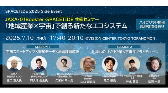 株式会社ゼロワンブースター(本社:東京都港区、代表取締役:鈴木規文、以下「01Booster」)は、国立研究開発法人宇宙航空研究開発機構(以下「JAXA」)、一般社団法人SPACETIDE(以下「SPACETIDE」 )との共催により、2025年7月10日(木)に「地域産業×宇宙」をテーマとしたセミナーを開催いたします。
