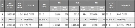 5. シリーズ作品別売上は『ONE PIECE』が2年ぶりの1位