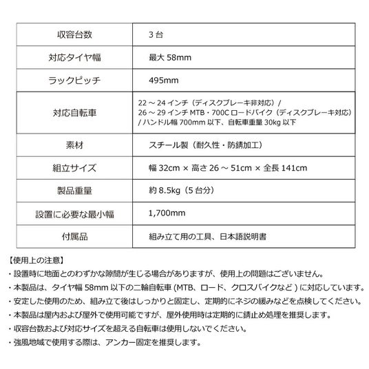・本製品は、タイヤ幅58mm以下の二輪自転車(MTB、ロード、クロスバイクなど)に対応しています。