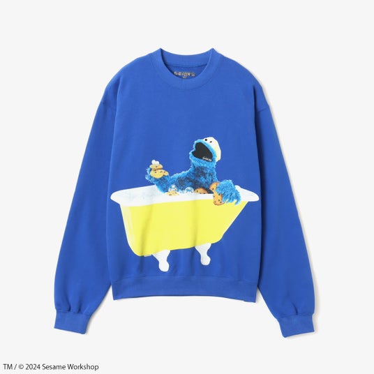 エルモ、クッキーモンスター、ビッグバード、オスカーといった各キャラクターのイメージカラーを使用したループ編みニットカーディガンは、まるでパペットのようなボリューム感と柔らかな肌ざわりが特徴です。また、キャラクターたちが大きくプリントされたスウェットトップスや、バートとアーニーが着ているトップスを彷彿とさせる配色のマルチカラーボーダーニット、エルモとクッキーモンスターのカラーをグラデーションで表現し、それぞれの顔をあしらったモヘア風のニットビーニーがラインナップ。