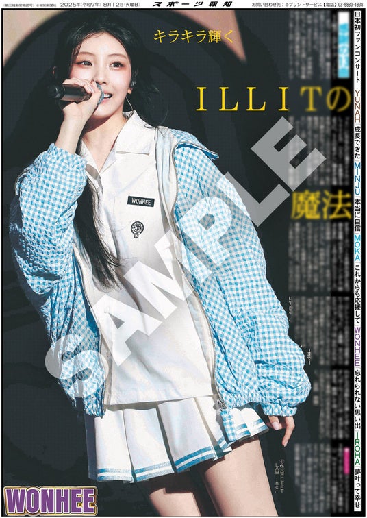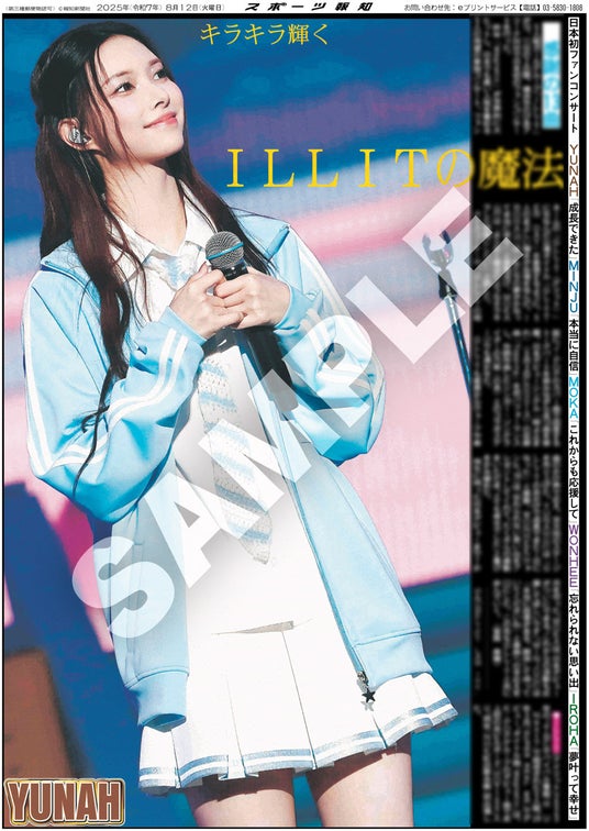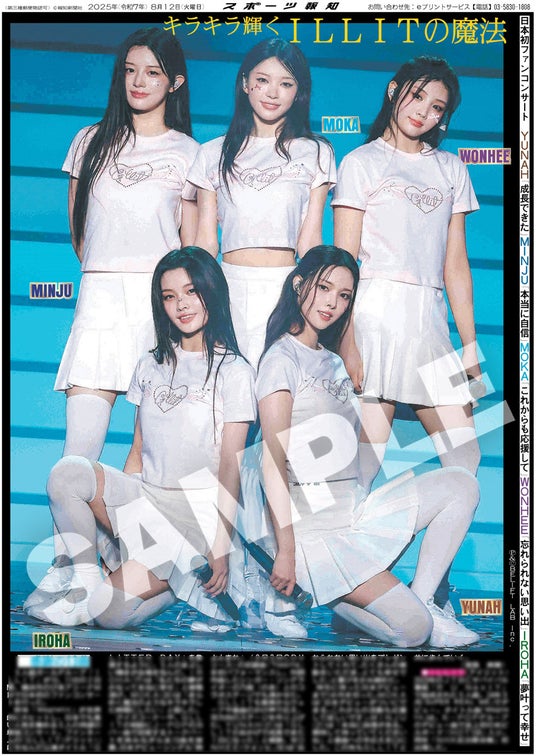 スポーツ報知を発行する報知新聞社(代表取締役社長・長谷川剛)は新聞の一部紙面をコンビニエンスストアのマルチコピー機からプリントできる「スポーツ報知コンビニプリント」サービスを展開中。スポーツ紙ならではの大きな写真を使った紙面をプリント版として販売しています。8月12日付に掲載した5人組ガールグループ「ILLIT」日本初のファンコンサート「2025 ILLIT GLITTER DAY IN JAPAN」ぴあアリーナMM公演の様子を伝える紙面を発売中。5人全員集合2パターンと個人別5パターンの合わせて7種類になります。