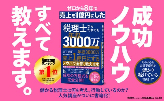 ビジネス書や実用書を中心に出版する株式会社クロスメディア・パブリッシング(本社:東京都渋谷区、代表取締役社長:小早川幸一郎)は、2025年3月21日に書籍『税理士ならだれでも年収3000万』を刊行します。本書は、税理士資格を取得したばかりの方、これから開業しようとしている方、開業したが思うように年収を伸ばせない方に向けて、税理士法を遵守しながらマーケティングを意識して税理士事務所の経営を行えば、誰でも年収3000万円に到達できるという方法論を示した書籍です。宮崎県で最大の税理士事務所グループを築いた池上成満氏が、自身の経験と100人を超える税理士への指導経験をもとに、具体的なノウハウを解説します。