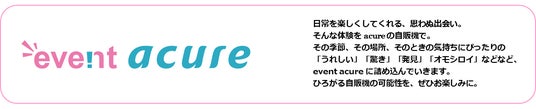 「event acure」は、季節やイベントに合わせてコンセプトを設定し様々な商品を展開していく百貨店の催事のようなものから、コンビニのレジ横のような話題の商品を取りそろえる、新しい形の自販機ビジネスです。飲料だけにとどまらず、さまざまな商品を販売していく予定です。