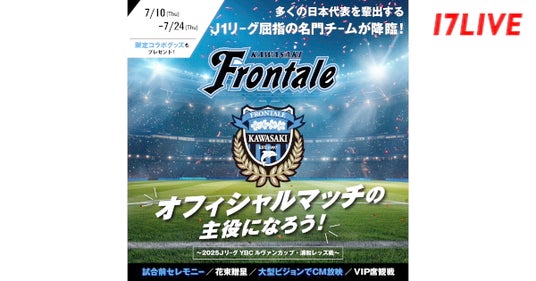 17LIVE株式会社(東京都渋谷区、代表取締役:ジャン・ホンフイ、URL:https://jp.17.live/)が運営する日本最大級のライブ配信アプリ「17LIVE(イチナナ)」は、2025年9月7日(日)に「Uvanceとどろきスタジアム by Fujitsu」で開催されるルヴァンカップ準々決勝の試合前セレモニーへ出演するライバーを決定するイベント、『川崎フロンターレ オフィシャルマッチの主役になろう ~2025JリーグYBCルヴァンカップ・浦和レッズ戦~』を、2025年7月10日(木)より開催することが決定しましたので、お知らせいたします。