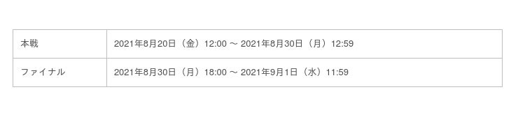 開催期間:2021年8月20日(金)12:00 ~ 2021年9月1日(水) 11:59
