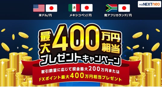 『外貨ネクストネオ』でのお取引で最大400万円相当!をプレゼント!