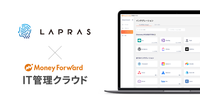 マネーフォワードi株式会社は、キャリアマッチングプラットフォーム『LAPRAS』を提供するLAPRAS株式会社が、SaaS管理プラットフォーム『マネーフォワード IT管理クラウド』を導入したことをお知らせします。あわせて、導入事例インタビューをWEBサイトに公開しました。