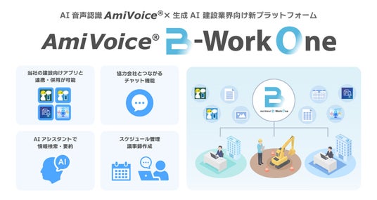 株式会社アドバンスト・メディア(本社:東京都豊島区、代表取締役会長兼社長:鈴木清幸 以下、アドバンスト・メディア)は、AIアシスタントが建設現場におけるスムーズな情報共有と業務効率化を支援する新プラットフォーム「AmiVoice B-Work One(アミボイス ビーワーク ワン)」の提供を4月9日(木)より開始いたします。