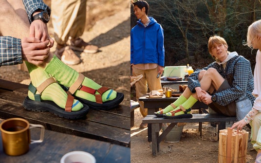 Tevaは1984年に米・グランドキャニオンで誕生。あるリバーガイドが人々を案内するのに、トングのサンダルだと容易に脱げてしまうことに困っていました。ある日、水辺でサンダルが脱げそうになったとき、彼は即席でたまたま近くにあった時計の面ファスナーのベルトをトングの緒に取り付け、サンダルが脱げにくいようにデザインしたことから、Tevaのサンダルは始まりました。新たに作るのではなく、「あるもの」で、まるでブリコラージュ的に作られたのがTevaのサンダルです。