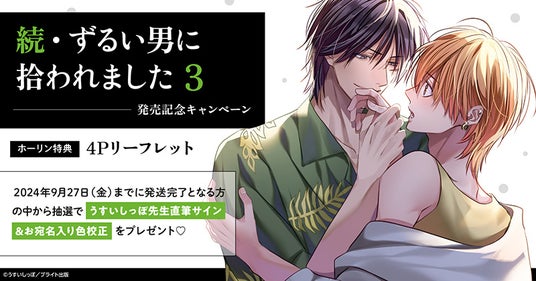 ホーリンラブブックスでは、うすいしっぽ先生最新コミックス『続・ずるい男に拾われました(3)』 発売を記念して豪華キャンペーンを実施いたします!