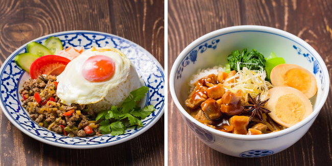 ・ガパオライス 890円(税込)‥タイで日常的に楽しまれている料理のひとつ。「ガパオ」とはバジルの意味で、甘辛く味付けをしたひき肉にバジルを加えてご飯に乗せた、日本の「丼」のような料理。