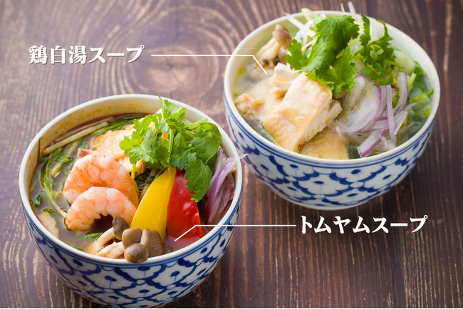 ・トムヤムスープ&鶏出汁ごはん(写真左)