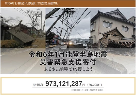 ~1月16日時点で寄付総額が9億7千万円以上に~