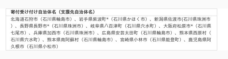 ■「令和6年1月能登半島地震 災害緊急支援寄付サイト」代理寄付受け付け掲載自治体