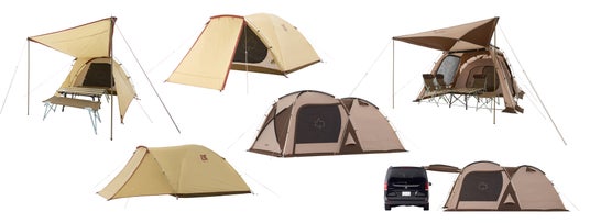 優れた機能性と高級感のあるデザインを兼ね備えた「グランベーシック」や「PREMIUM」ライン、とんがり屋根が特徴のワンポールテント「Tepee」シリーズに加え、普段は触れること少ない大型ドーム「デカゴン」や「オクタゴン」なども一部の店舗で特別に展示されており、キャンプ初心者だけでなく経験者の方も楽しめるイベントとなっております。