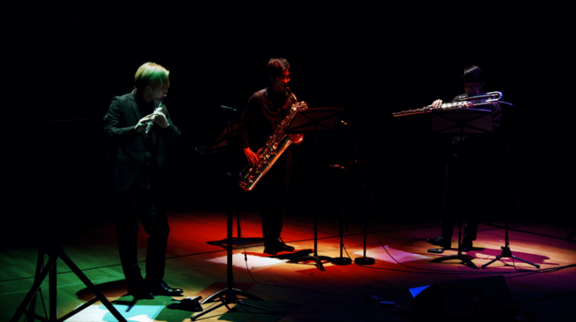 本堂誠(サクソフォン) / 篠崎和紀(コントラバス) / 佐原洸(電子音響)